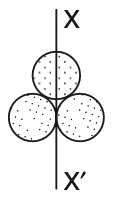 Three identical spherical shells, each of mass and radius are placed as shown in the figure. Consider an axis which is touching to two shells and passing through the diameter of the third shell. The moment of inertia of the system consisting of these three spherical shells aboutaxis is