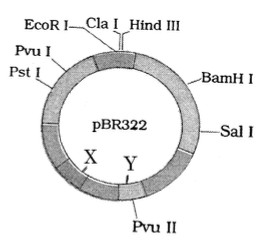 To solve this problem, we need to identify the roles of the 'X' and 'Y' genes in the pBR322 cloning vector.The pBR322 vector is a commonly used plasmid in molecular cloning. It contains several important features:Antibiotic resistance genes: These provide resistance to antibiotics, allowing for the selection of bacteria that have taken up the plasmid.Replication origin: This is necessary for the replication of the plasmid within the host cell.In the diagram, 'X' and 'Y' are labeled on the plasmid. Let's determine their roles:Gene 'X': This gene is responsible for controlling the copy number of the linked DNA.Gene 'Y': This gene is involved in the replication of the plasmid.Based on this analysis, the correct option is:Option 4: The gene 'X' is responsible for controlling the copy number of the linked DNA and 'Y' for protein involved in the replication of Plasmid.Therefore, the correct answer is Option 4.