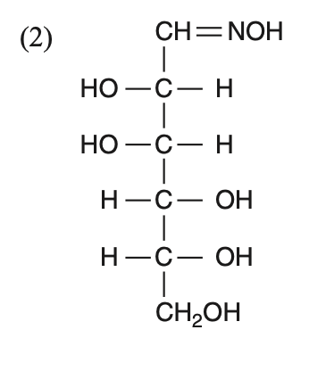 D-(+)-glucose reacts with hydroxylamine and yields an oxime. The structure of the oxime would be