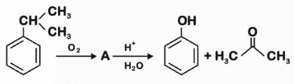 To solve this problem, we need to identify the intermediate A in the given reaction.The reaction involves the oxidation of an isopropyl benzene (cumene) to form phenol and acetone.This is a classic example of the cumene process, which involves the following steps:1. Oxidation of cumene:• Cumene reacts with