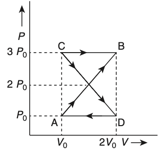 A thermodynamic system undergoes cyclic process ABCDA as shown in the figure. The work done by the system in the cycle is