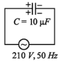 A capacitor is connected to a source as shown in figure. The peak current in the circuit is nearly ( ):