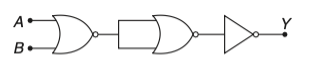 To solve this problem, we need to analyze the given logic circuit.The circuit consists of:⢠An OR gate with inputs and ⢠A NOT gate (inverter) following the OR gate.Let's break down the circuit step-by-step:1. The OR gate outputs (The OR operation results in a high output if either or is high.)2. The output of the OR gate is fed into a NOT gate. The NOT gate inverts the input, so the output becomes The final output of the circuit is which is the logical NOR operation.Therefore, the given electrical network is equivalent to a NOR gate.This corresponds to Option 2.