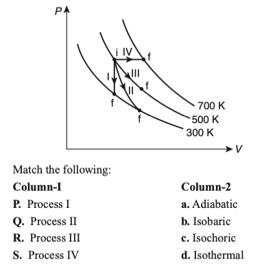 Thermodynamic processes are indicated in the following diagram: Match the following: