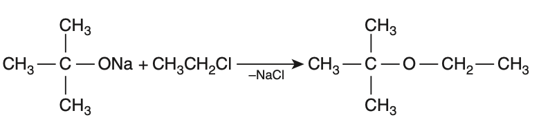 To solve this problem, we need to identify the type of reaction shown in the image.The reaction involves:• A sodium alkoxide (CHC(ONa)(CH)CH)• An alkyl halide (CHCHCl)The product is an ether (CHC(OCHCH)(CH)CH), with NaCl as a byproduct.This reaction is known as the Williamson ether synthesis, which is a method to prepare ethers.In this reaction:• The sodium alkoxide acts as a nucleophile.• It attacks the alkyl halide, displacing the halide ion (Cl) and forming an ether.Therefore, the correct option is:Option 4: Williamson synthesis