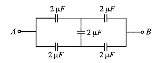 In the following circuit, the equivalent capacitance between terminal A and terminal B is: