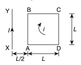 To solve this problem, we need to calculate the net force on the square loop ABCD due to the long straight conductor XY.The force between two parallel current-carrying conductors is given by: