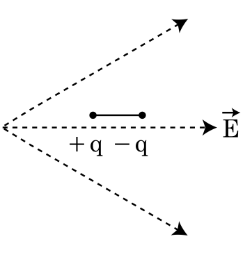 A dipole is placed in an electric field as shown. In which direction will it move?