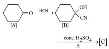 To solve this problem, we need to analyze the given reaction sequence.1. The first reaction involves the conversion of a ketone to a cyanohydrin - The reaction is: - Cyclohexanone reacts with HCN to form a cyanohydrin.2. The second step involves the dehydration of the cyanohydrin