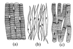 (a) Skeletal - Tongue(b) Smooth - Intestine(c) Cardiac - Heart.
