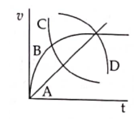 A spherical ball is dropped in a long column of a highly viscous liquid. The curve in the graph shown, which represents the speed of the ball as a function of time is: