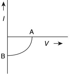 To solve this problem, we need to analyze the V-I characteristic graph provided.The graph shows a curve starting from point B on the current axis and reaching point A on the voltage axis.Let's interpret the graph:• Point A is on the voltage axis, indicating zero current. This is the open circuit voltage.• Point B is on the current axis, indicating zero voltage. This is the short circuit current.Now, let's evaluate the options:Option 1: It is V-I characteristic for a solar cell where, point A represents open circuit voltage and point B short circuit current.